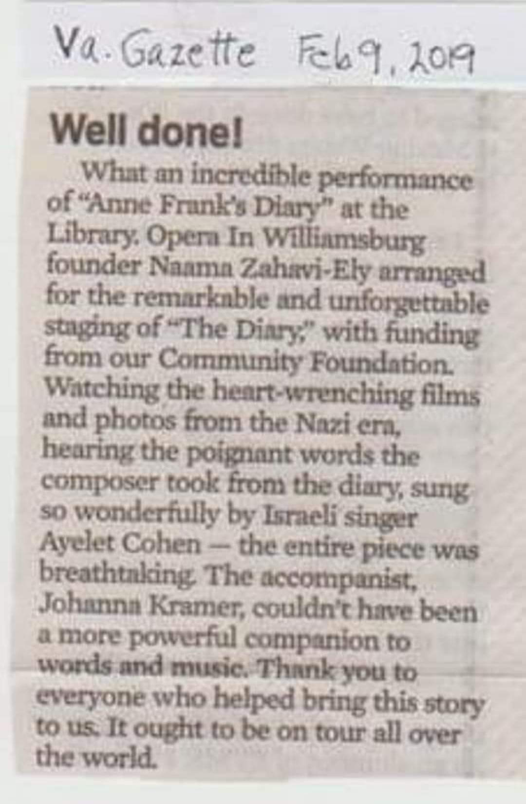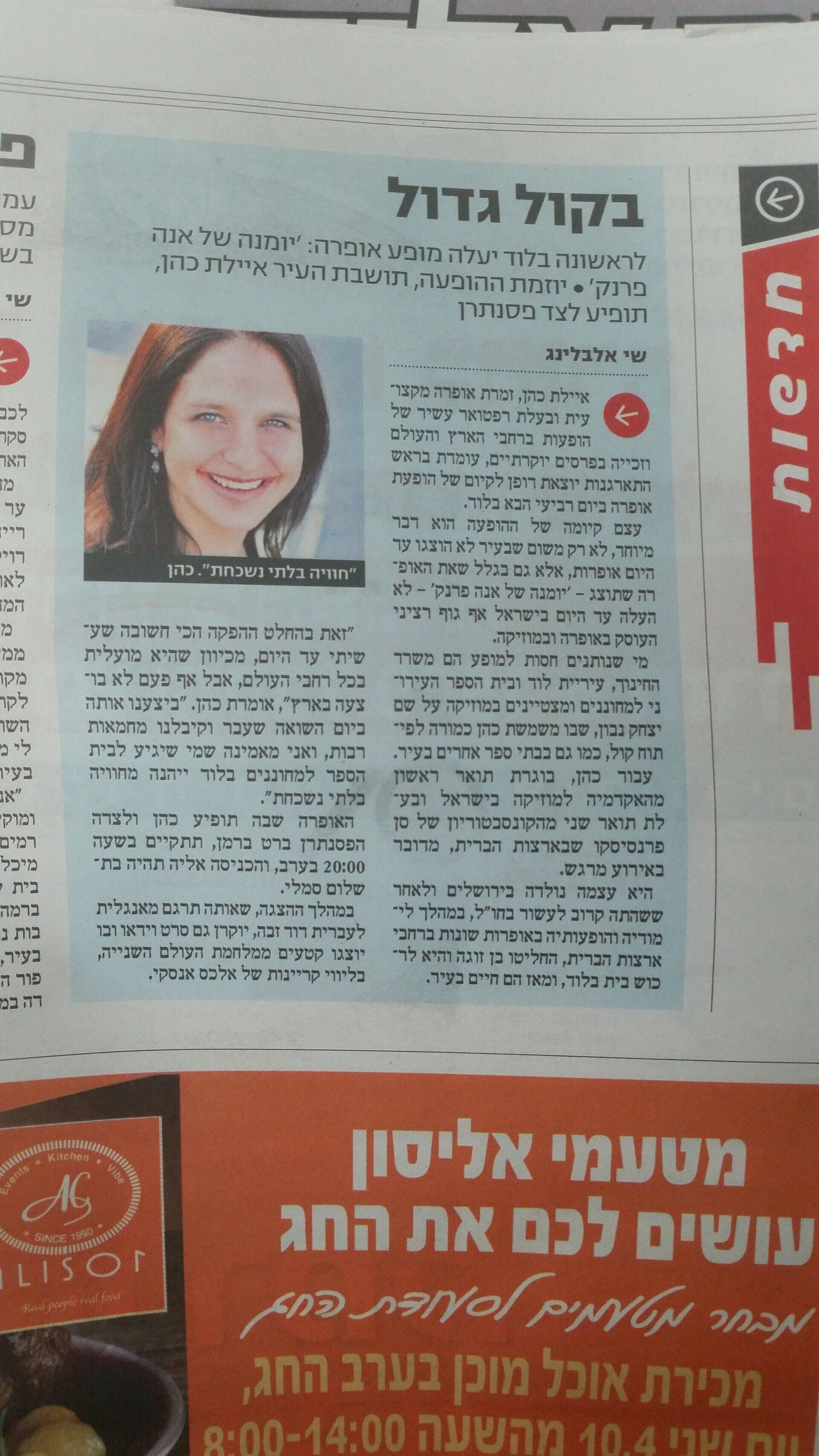 לקראת יום השואה. ראיון מיוחד עם זמרת האופרה אילת כהן על האופרה "יומנה של אנה פרנק" של גריגורי פריד בעברית